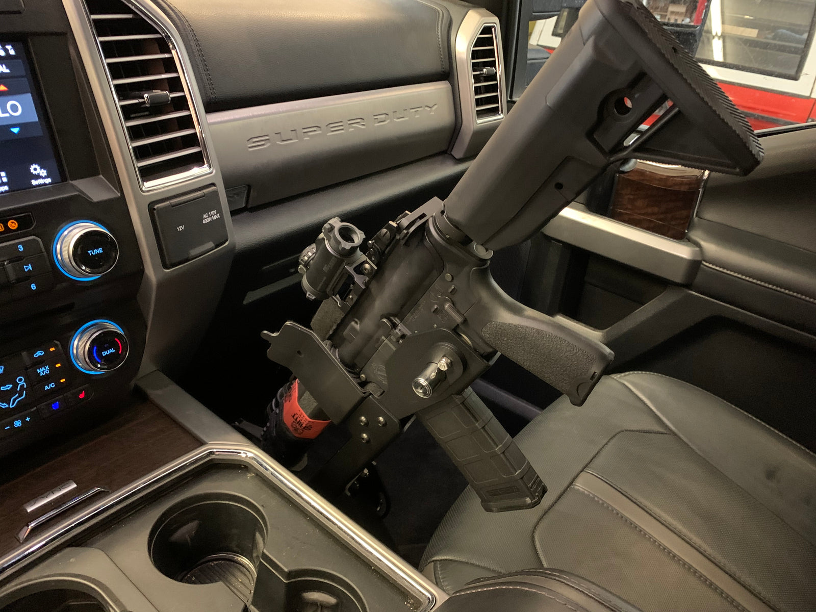 Front Seat Mount Kits allow you quick easy and secure access to your rifle in about any vehicle
